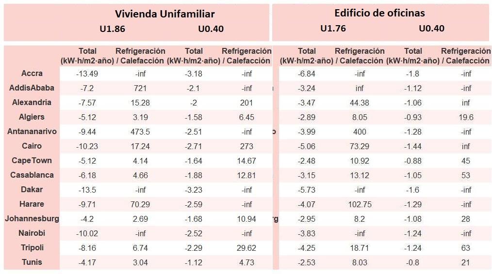 • Simulaciones realizadas para una vivienda y edificio de oficinas con nivel bajo de estanqueidad, y considerando un nivel óptimo de calidad de aire en las oficinas. Para viviendas y oficinas con un mejor nivel de estanqueidad y oficinas con recuperador de calor los beneficios de usar tejados frescos son mayores